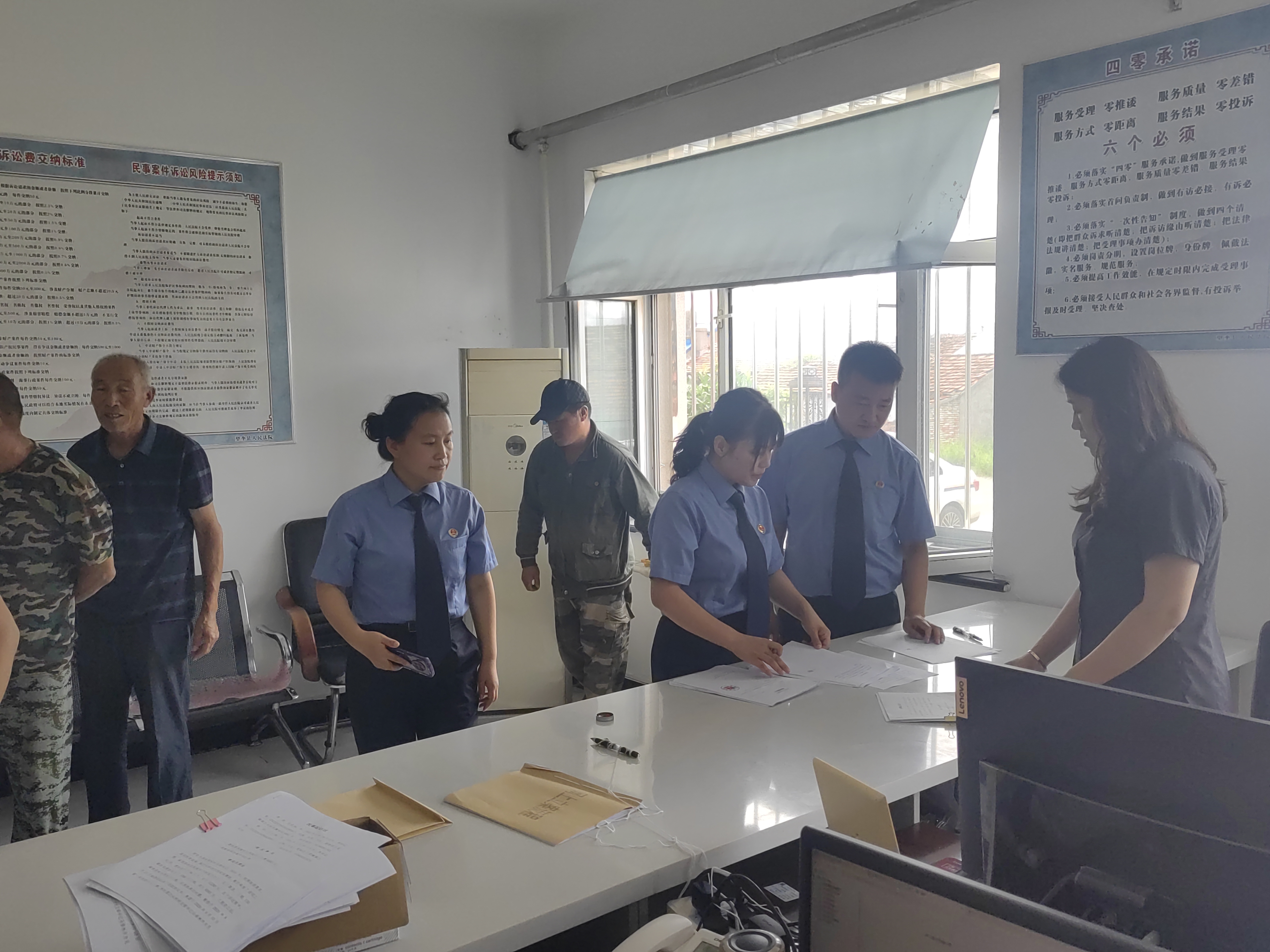 2023年的8月,几名农民工满头大汗,拿着还款协议书无助的站在了卫星法庭的门前。钱某等人是望奎县卫星镇的农民,2019年开始王某便雇佣钱某等人从事房屋建造工作,分别负责力工、瓦工等工作。双方未签订劳务合同,口头约定工资为每天280元,工程完工后,王某未给付工资款,于2020年才与钱某等人签订了还款协议书一份,但协议书上却未写明拖欠人工费的具体金额。案件关键证据缺失,诉状不会写,王某也联系不上,讨薪三四年,钱某等人急的是唉声叹气!钱某等人希望由检察院支持起诉,望奎县人民检察院的工作人员知道这件事情以后,迅速的来到了法庭,我们一起对案件进行了调查,核实每名农民工欠薪的具体金额,并且通过联系卫星镇司法所调解委员会,动用四级调解网络,联系上了包工头王某,司法所工作人员与王某一同来到了法庭。