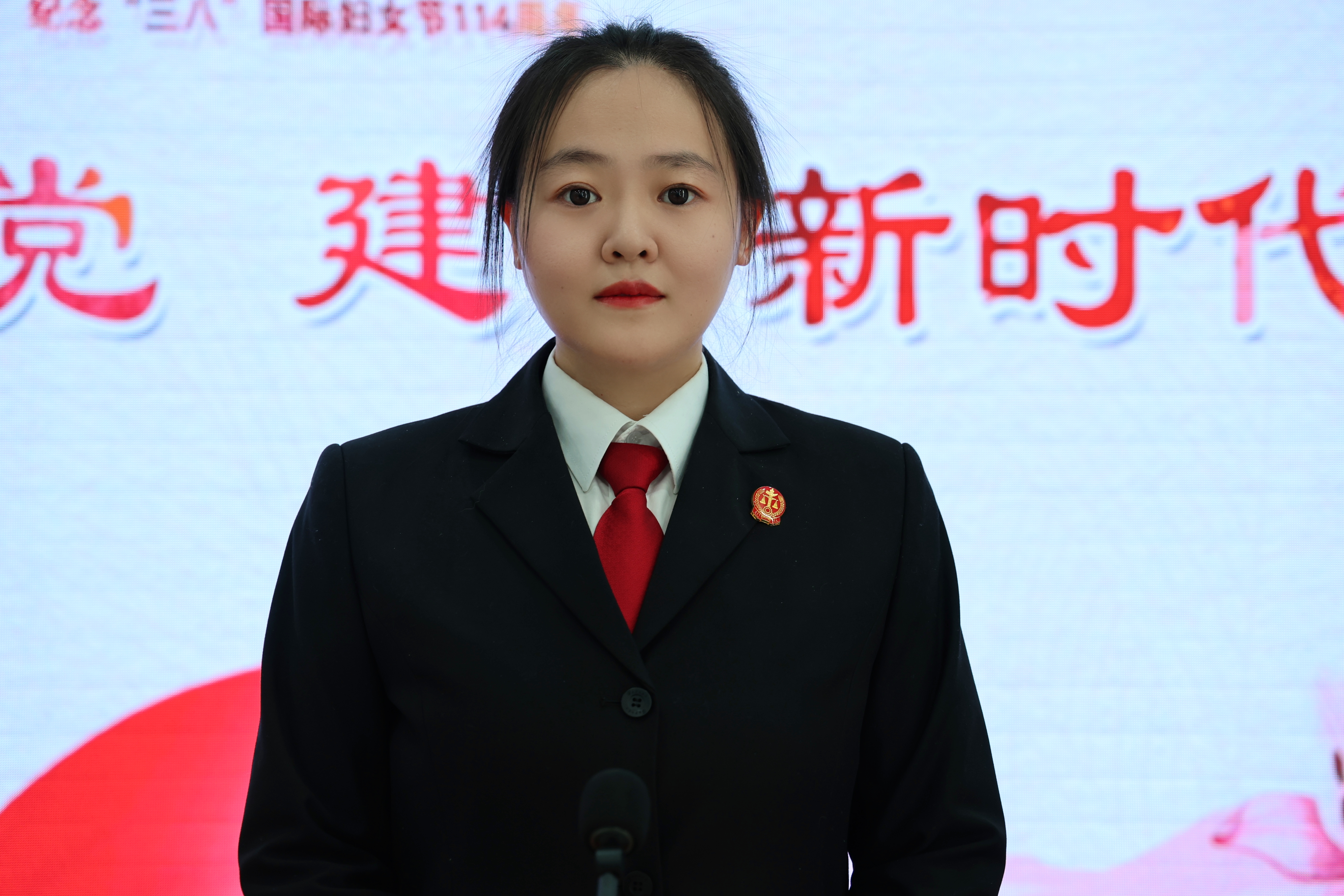 巾帼心向党,建功新时代。作为女性,我深感自豪。在法院工作中,我坚守岗位,展现自尊自信。面对挑战,我自立自强,勇往直前。这不仅是个人风采,是新时代女性的风采,更是法院女干警的共同风貌,让我们携手并进,共创美好未来!