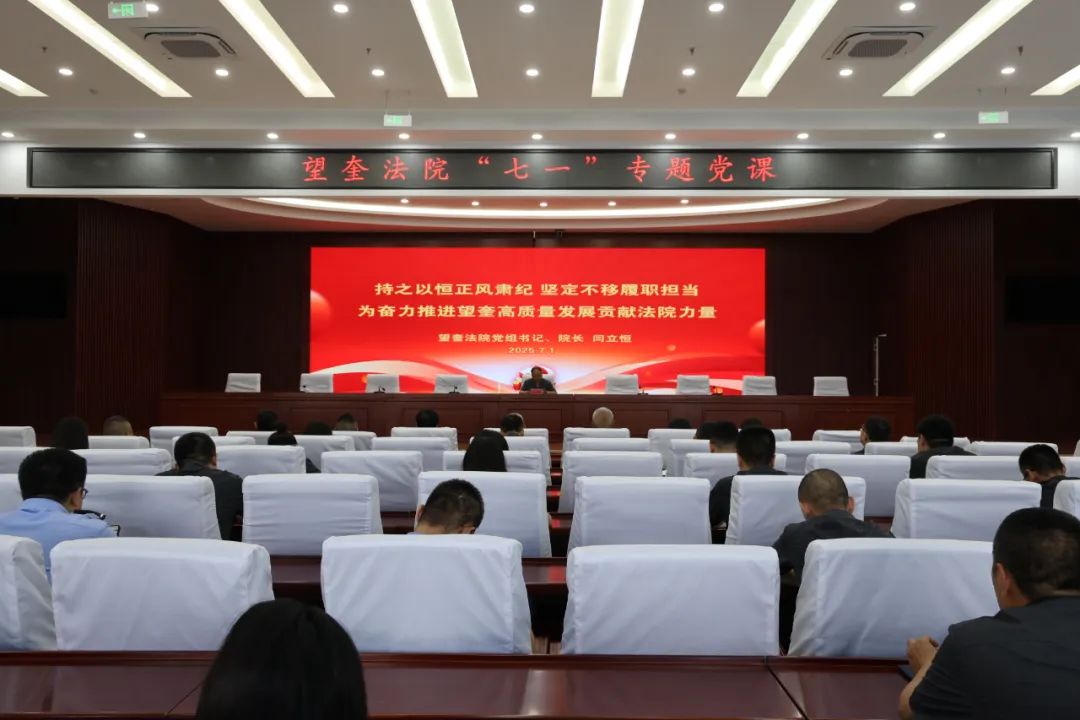 为深入学习贯彻习近平新时代中国特色社会主义思想,扎实推进深入贯彻中央八项规定精神学习教育走深走实,进一步引导全院干警筑牢政治忠诚,提升政治素养,7月1日,望奎法院党组书记、院长闫立恒以《持之以恒正风肃纪坚定不移履职担当为奋力推进望奎高质量发展贡献法院力量》为题,为全院干警作专题党课辅导。